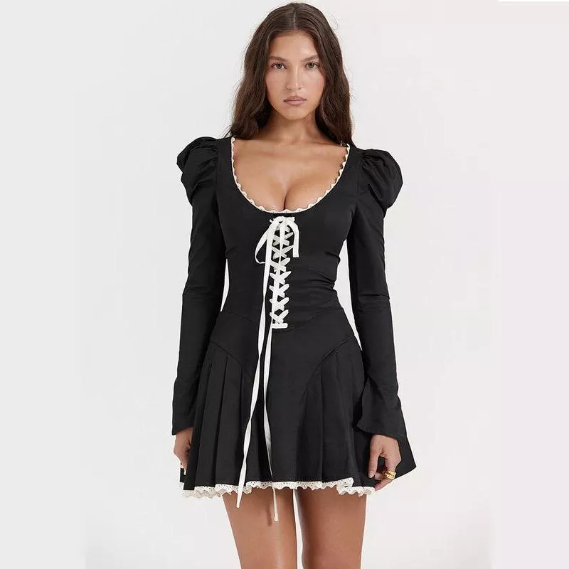 Elegant Puff Sleeve Lace Bandage Mini Dress