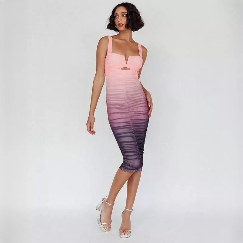 Chic Gradient Mesh Backless Bodycon Midi Dress