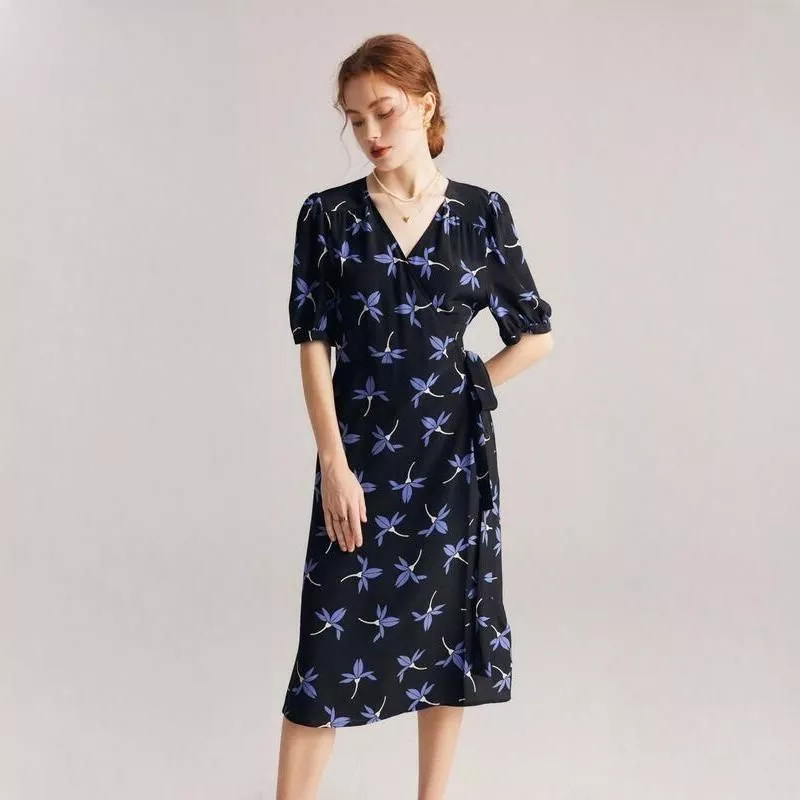 V-Neck Chiffon Fairy Dress with Chinese Print