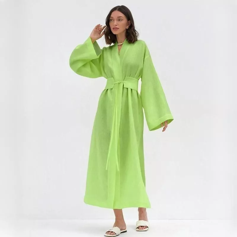 Elegant Beige A-line Long Sleeve Dress with Belt