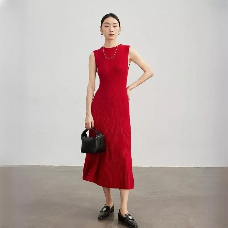Elegant Sleeveless Wool Blend Mid-Calf Dress
