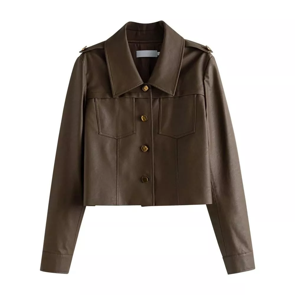 Step into the season with a touch of timeless elegance and flair. Our Retro Front Shoulder Leather Coat is the epitome of style and sophistication. Crafted with care, this Spring New Full Sleeve Single Breasted Jacket is designed to elevate your fashion game effortlessly.