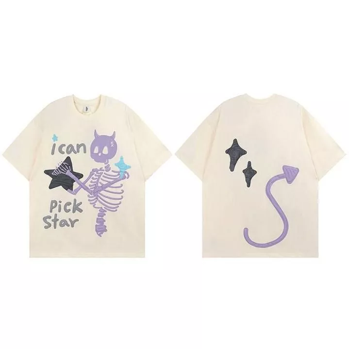 Step into the world of street fashion with our latest addition – the Skull Skeleton Star Graphic T-Shirt. Perfectly blending comfort with style, this 100% cotton tee is a must-have for your summer wardrobe. Designed for those who dare to stand out, it features a unique devil horn skull pattern, making it a striking choice for any casual occasion.