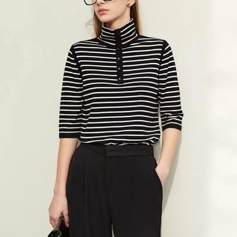 Embrace the arrival of spring with our Spring Elegance Striped Wool Blend Sweater. Meticulously crafted for the modern woman, this sweater combines timeless style with contemporary fashion sensibilities. It’s more than just a piece of clothing; it’s a statement of elegance and sophistication.