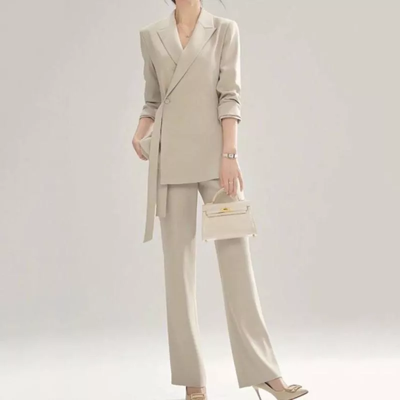 Elegant Cotton Linen Women’s Blazer and Pants Set