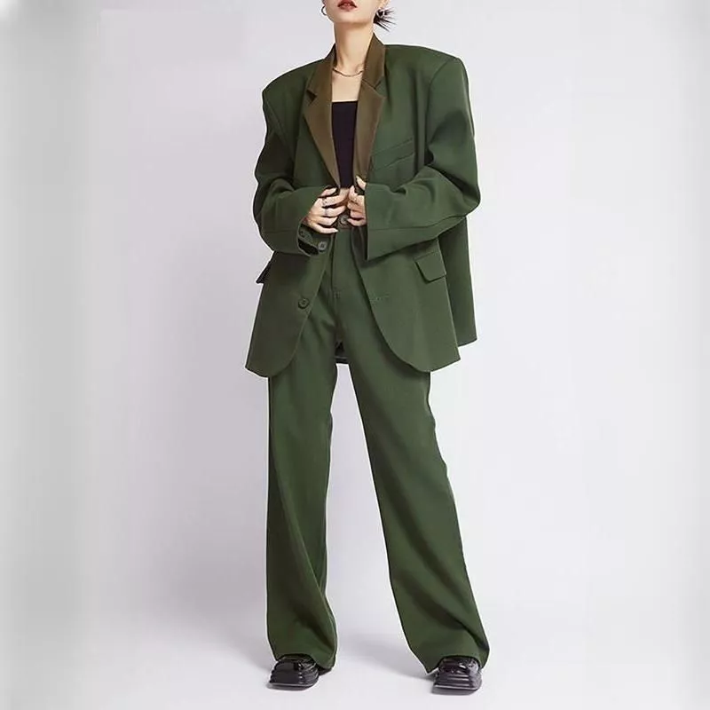 Vintage 2-Piece Wide-Leg Pants Suit with Single-Breasted Blazer
