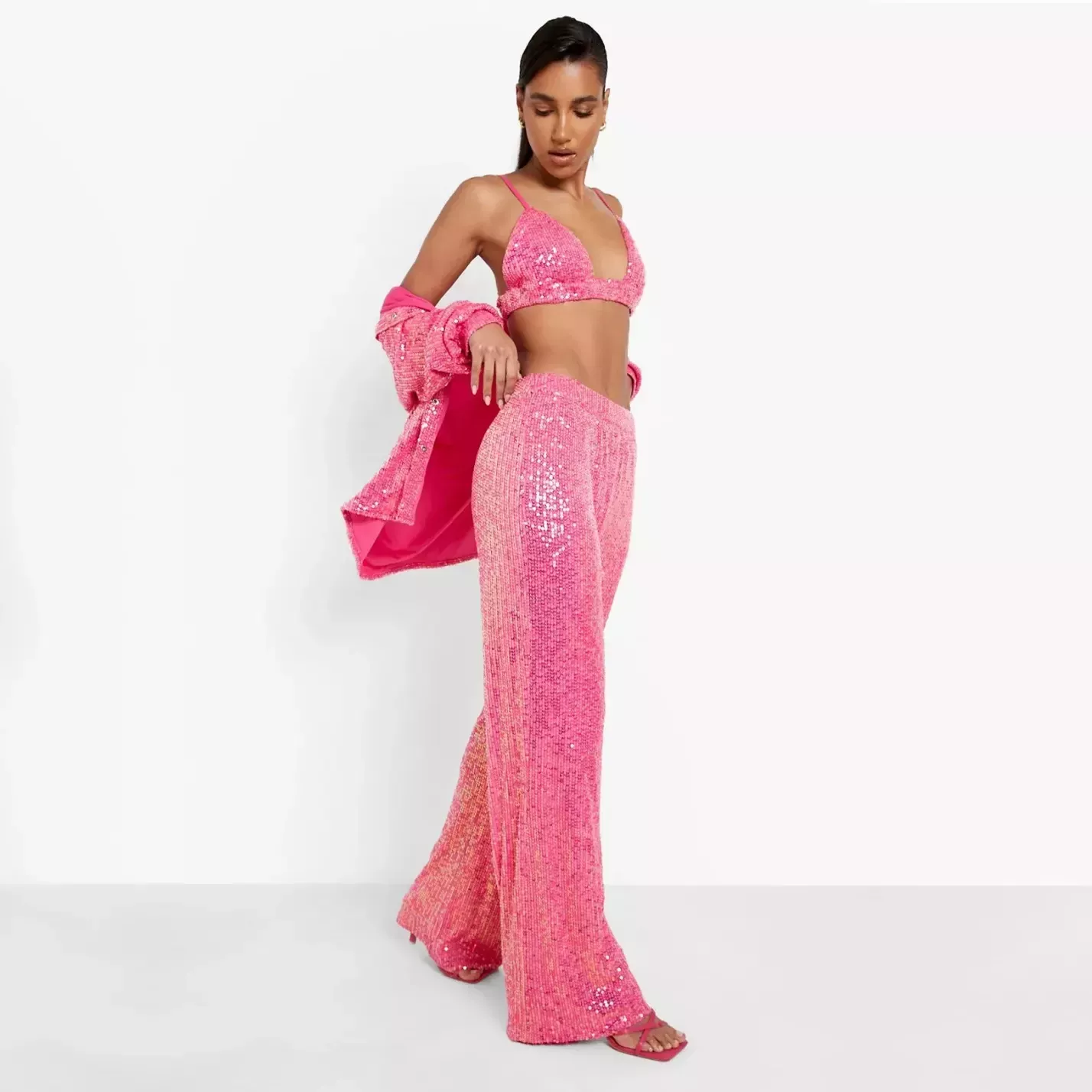 Elegant Designer Women’s Beaded Blazer and Flare Pants Suit Set