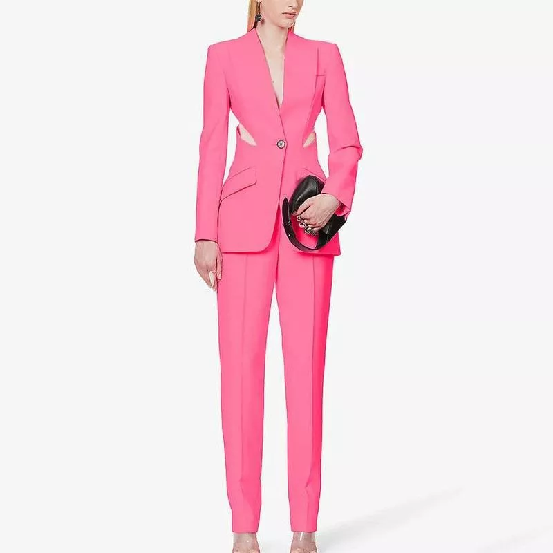 Elegant Hollow Out Two-Piece Blazer and Pant Set for Women