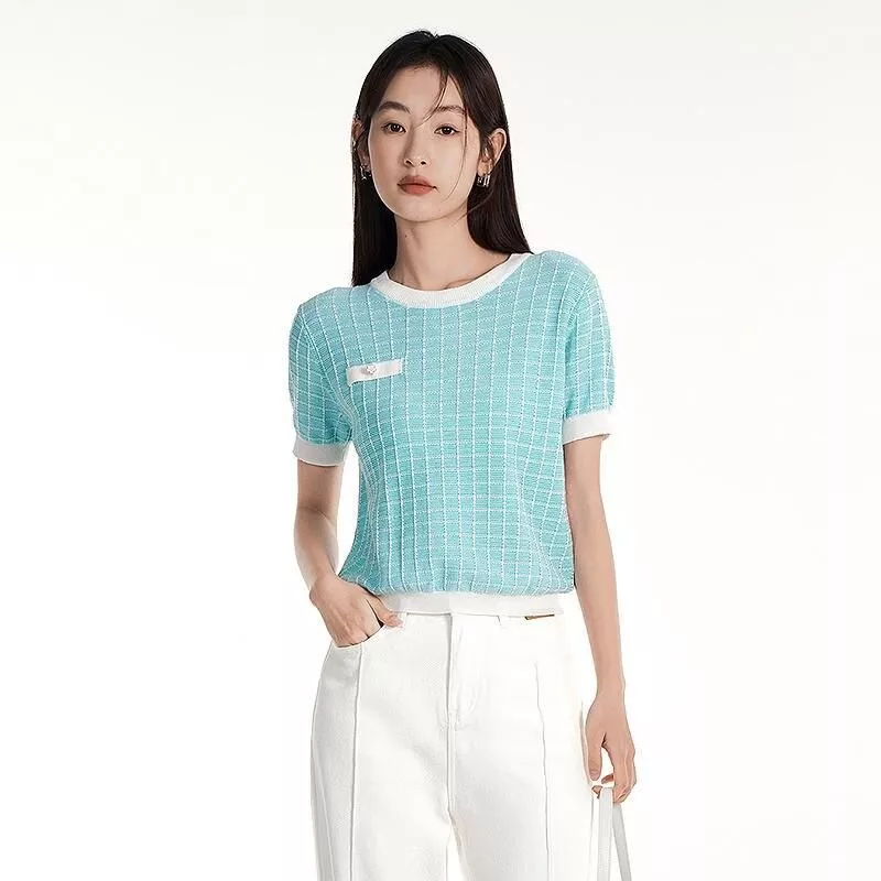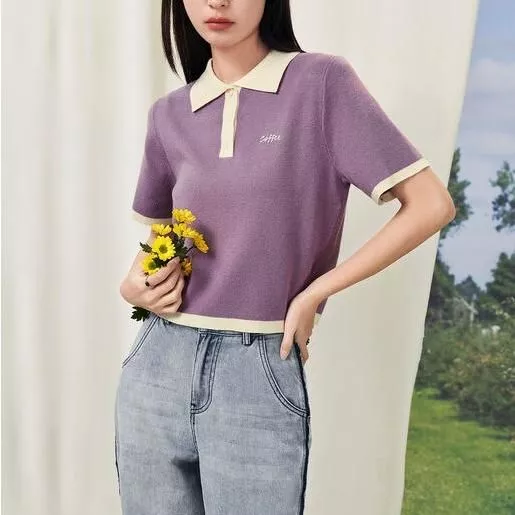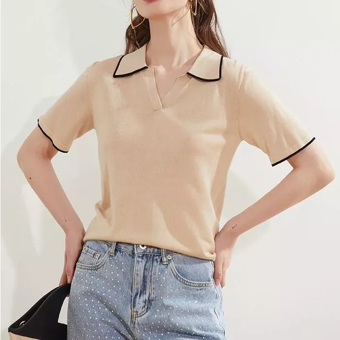 Women’s Half High Collar Short Sleeve Knitted Pullover