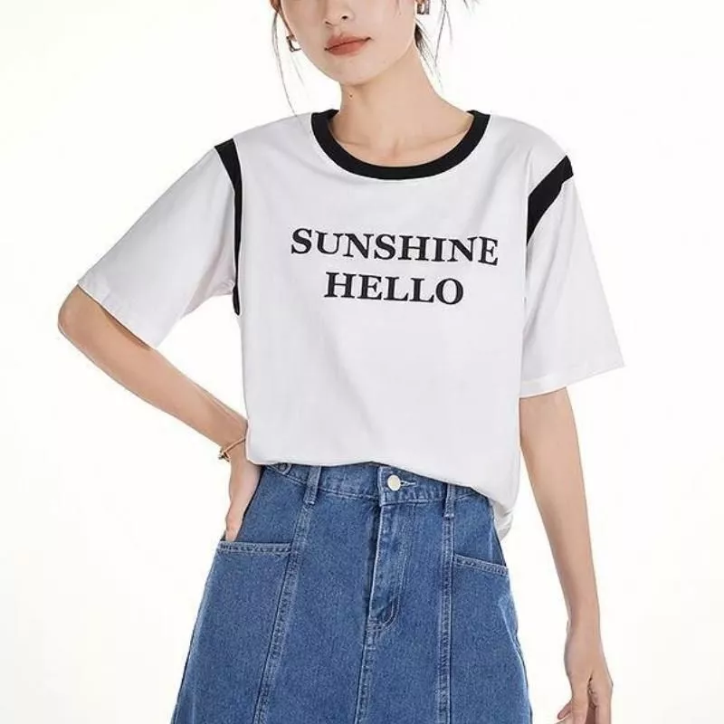 Summer Casual Short Sleeve O-Neck Tee with Cool Fabric and Letter Print