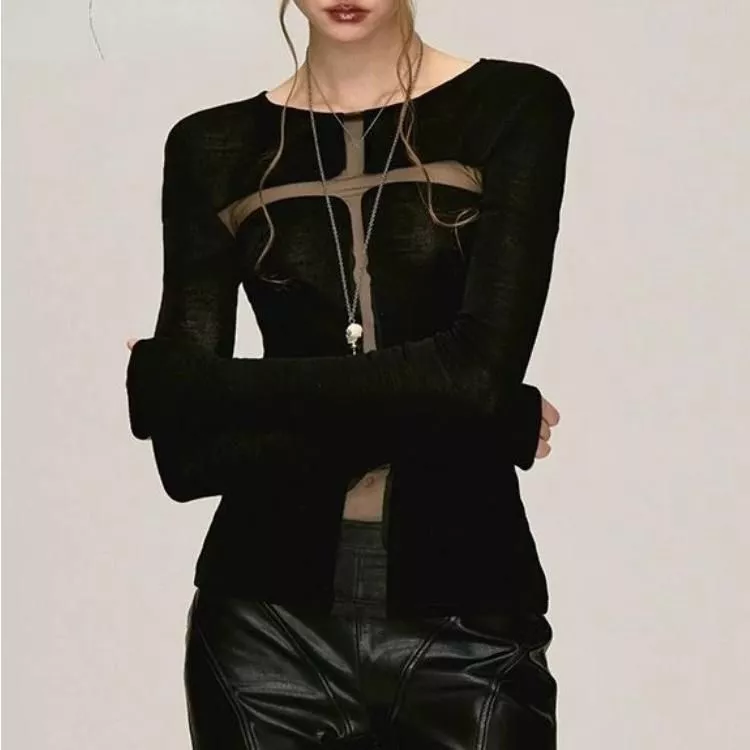Colorful Mesh Ruffle Long Sleeve T-Shirt