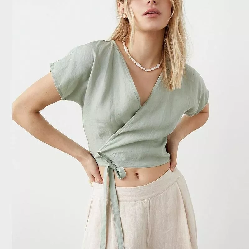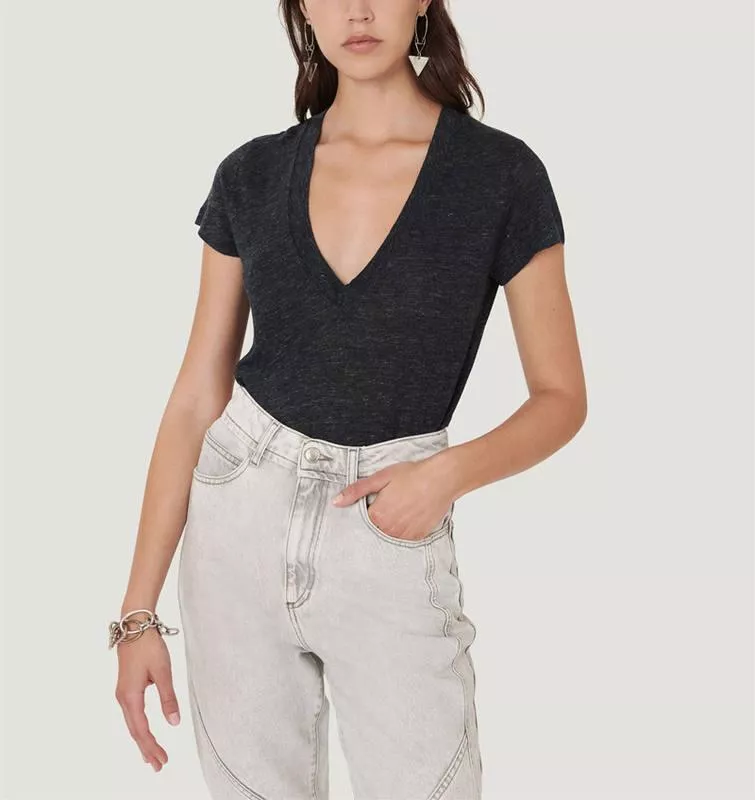 Summer Cotton Linen V-Neck T-Shirt for Women