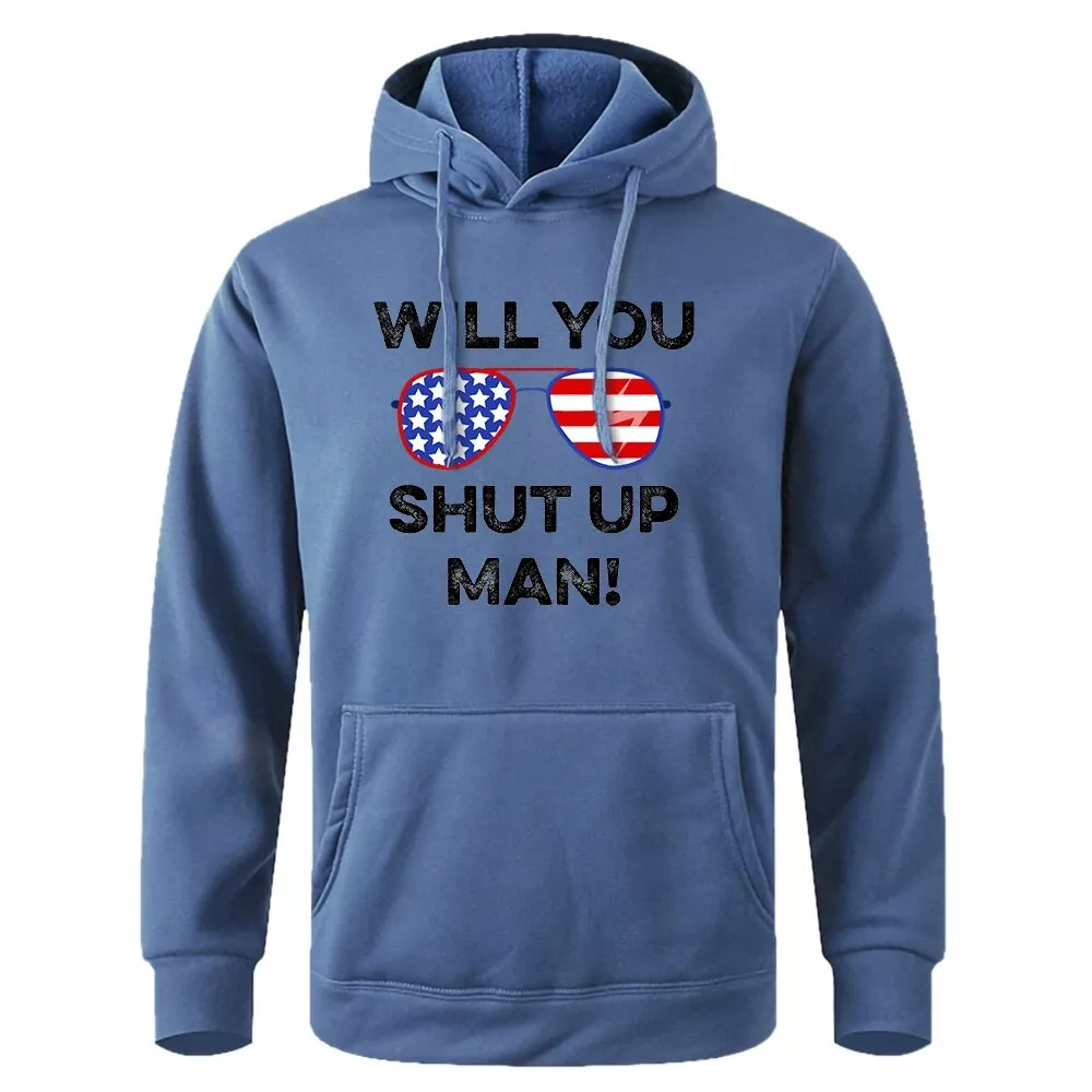 Introducing our latest collection’s highlight – the Men’s Winter Fleece Hoodie, designed for those who appreciate comfort without compromising on style. Perfectly blending a casual look with a touch of audacity, this sweatshirt features a bold “Will You Shut Up, Man” print, making it more than just a piece of clothing. Crafted with premium polyester and thick fleece material, it promises to keep you warm during the colder months of autumn and winter. With its unique design and superior comfort, this hoodie is set to become your go-to wardrobe essential.