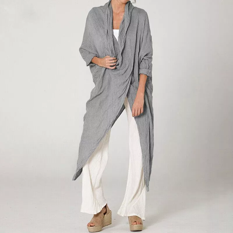 Introducing our Autumn Women Tops, a perfect blend of vintage charm and modern elegance. This Solid Blouse features a cowl neck, long sleeves, and an asymmetrical hem, creating a unique and stylish look that’s perfect for any occasion.