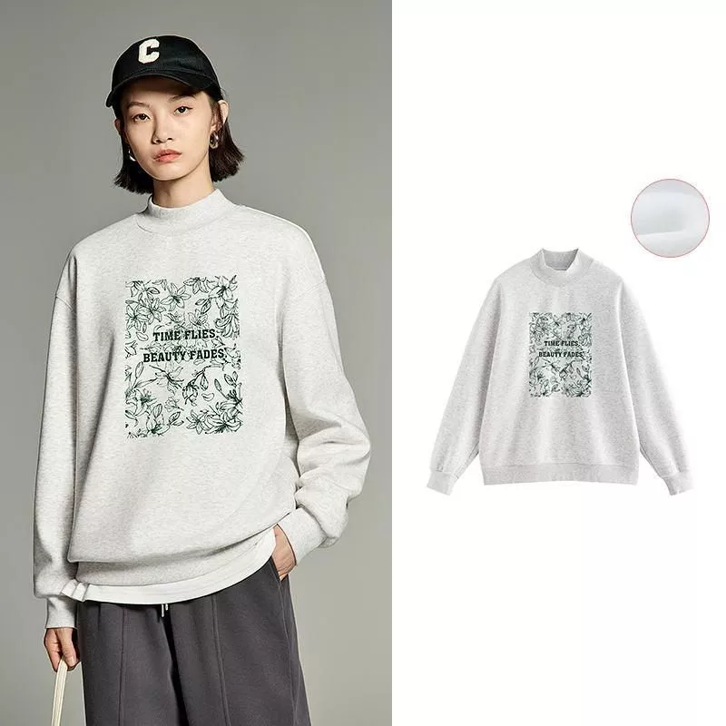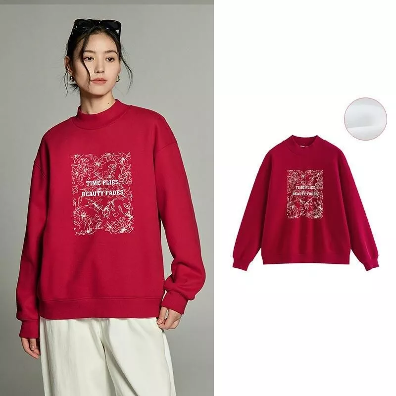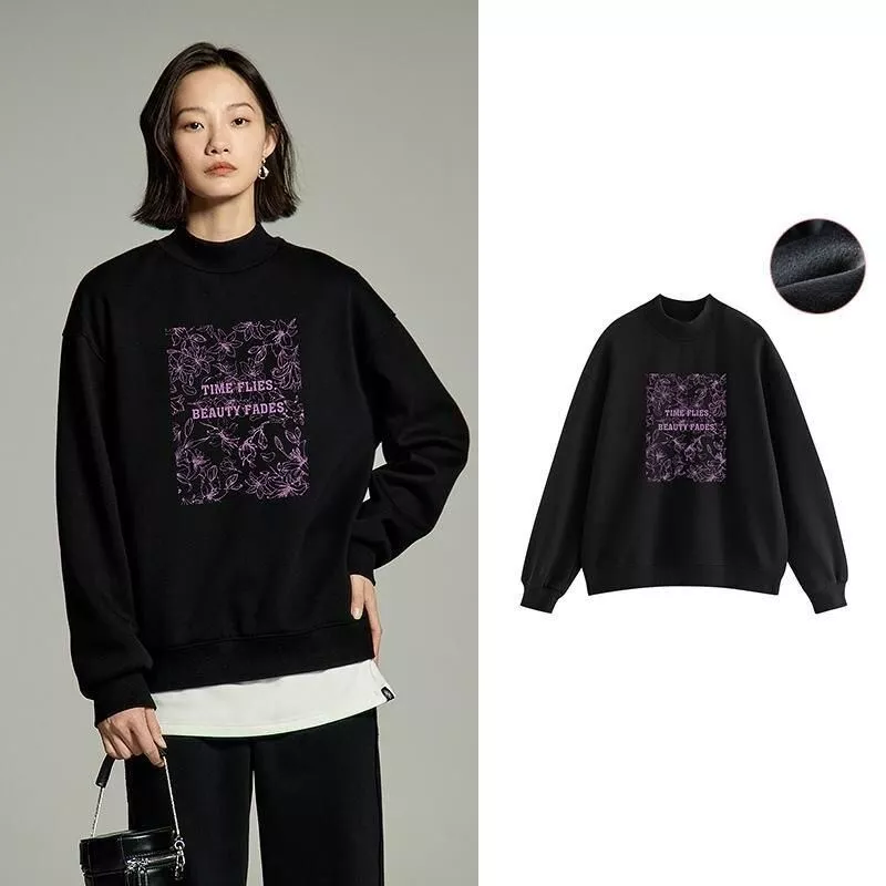 Our plush sweatshirt boasts a range of features designed for your comfort and style. It’s crafted with a high-quality synthetic fiber blend, ensuring both durability and a soft touch. The half-high collar adds a chic touch, while the loose fit ensures you stay comfortable all day long. The sweatshirt comes in a regular clothing length with full-length drop sleeves, ideal for those who prefer a relaxed yet stylish look.