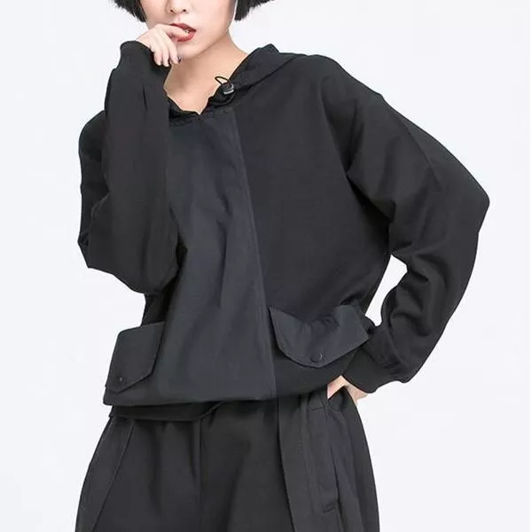 Introducing our Women’s Black Pocket Split Joint Drawstring Big Size T-shirt – a perfect blend of comfort, style, and versatility. This hooded long sleeve tee is designed to elevate your fashion game while providing the utmost comfort for all seasons.
