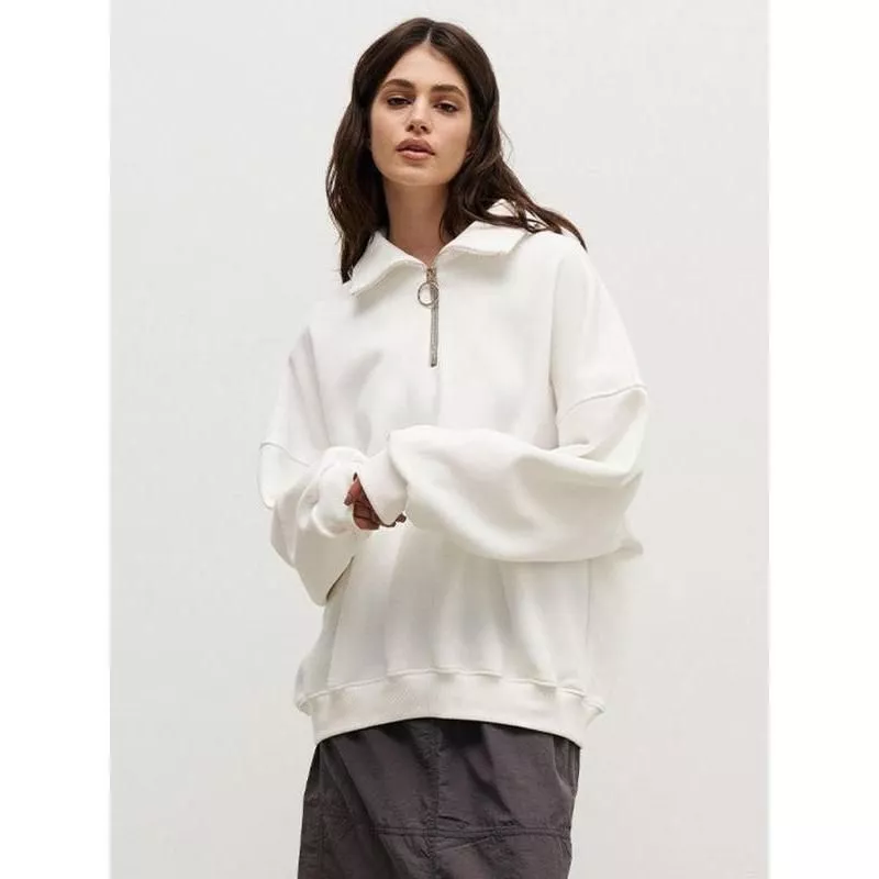 Our sweatshirt stands out with its unique blend of style and practicality. The combination of cotton and polyester offers the perfect balance between warmth and breathability. Its oversized design provides a modern, relaxed fit, while the turn-down collar adds a sophisticated touch. The full-length sleeves and standard thickness make it an ideal choice for cooler days, ensuring you stay warm without compromising on style.
