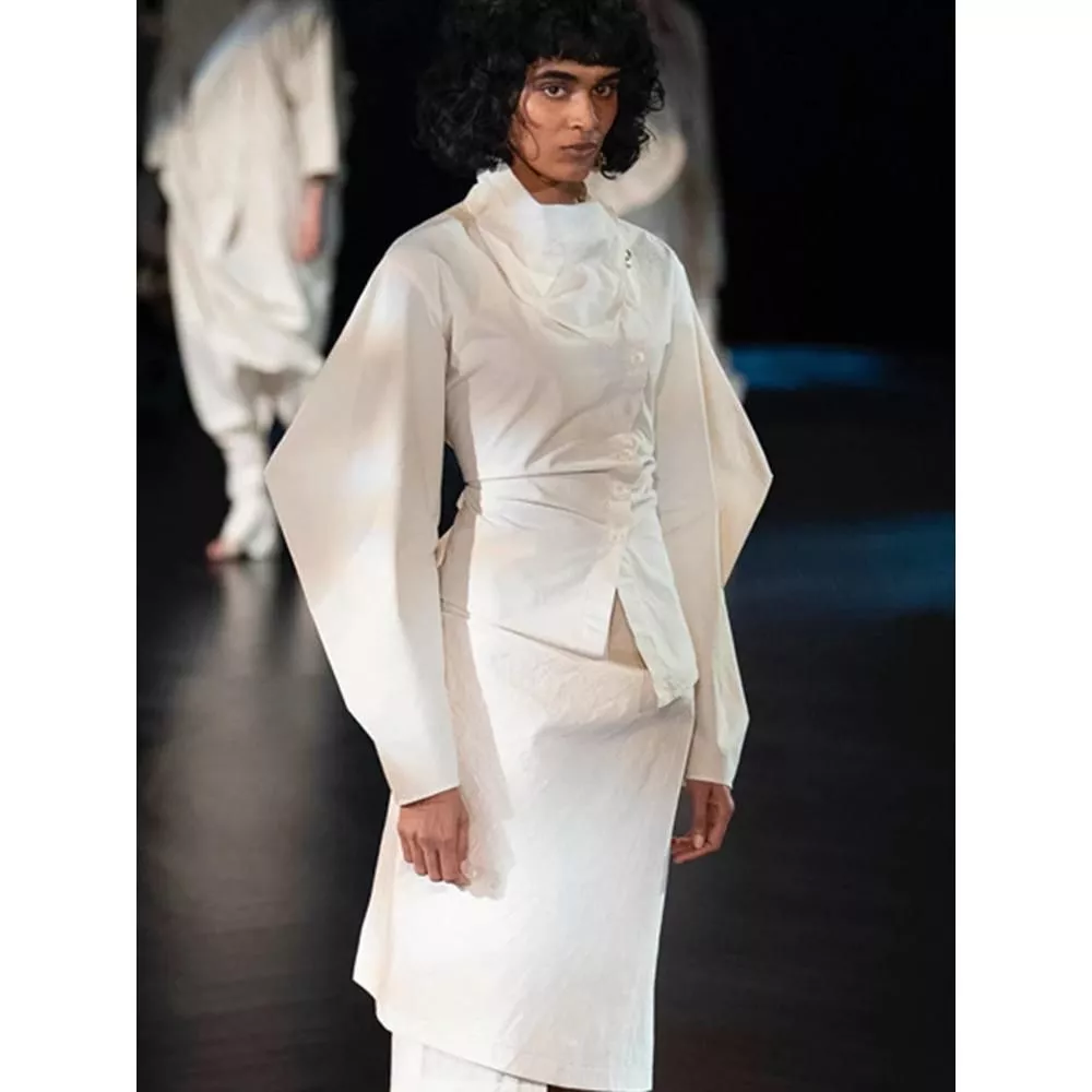 This blouse is perfect for any season, especially during autumn. Its midweight thickness makes it ideal for spring evenings and summer nights as well. Whether you’re heading to the office, a casual brunch, or a night out, this blouse will elevate your look with its elegant and contemporary design.