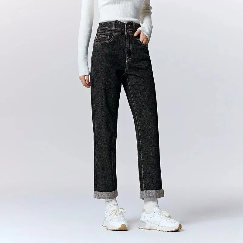 Elevate your casual wardrobe with our Jeans Women High Waist Fleece Straight Pants. Crafted with comfort in mind, these pants are designed to keep you cozy without compromising on style. The perfect blend of fashion and functionality, these pants are a must-have for every modern woman.