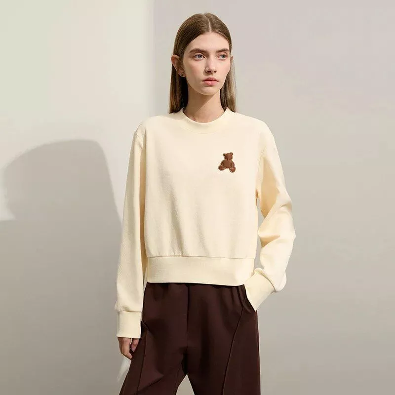 What sets this hoodie apart is its adorable bear applique embroidery, adding a touch of playfulness and uniqueness to your outfit. Crafted with a blend of high-quality cotton and polyester, it offers both durability and softness. The straight, regular-fit design flatters any body type, while the drop sleeves add a trendy twist to the classic pullover style.