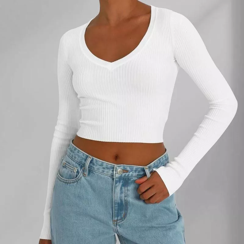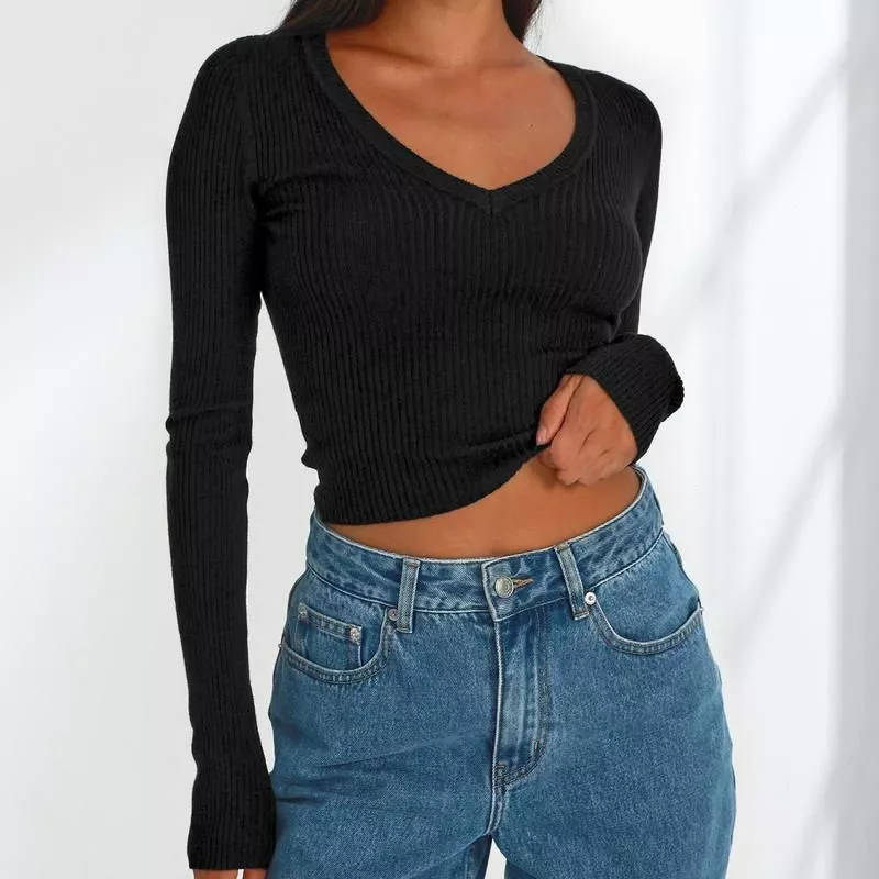 Our Y2K Ribbed V-Neck T-Shirt stands out for its unique blend of style and functionality. It’s more than just a piece of clothing; it’s a fashion statement. With its slim fit design, it flatters your figure while providing utmost comfort. The classic solid color makes it an easy match with any outfit, and the full sleeves add a touch of elegance, making it suitable for both casual and formal settings. The knitted fabric ensures longevity, meaning this top will remain a key piece in your wardrobe for seasons to come.